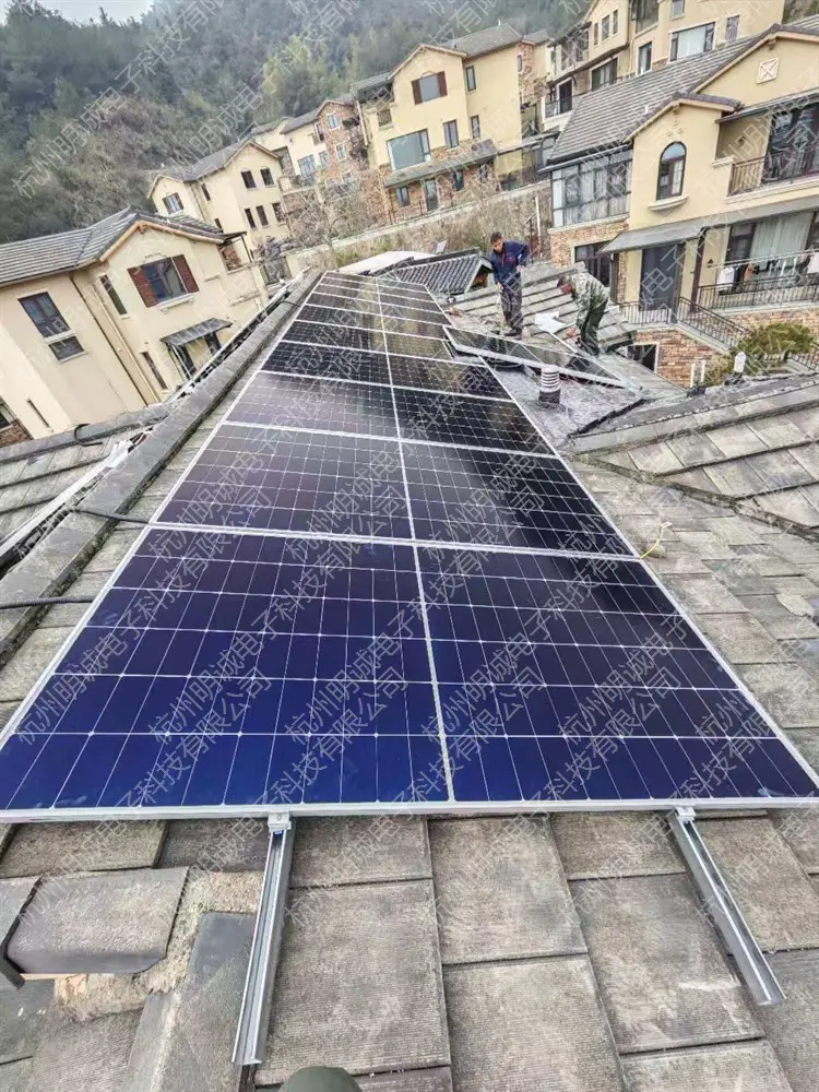 高效太阳能电池板: 根据别墅屋顶的面积、朝向、倾斜角度以及当地的日照条件,优化设计太阳能电池板的安装方案,并选用高效的单晶硅或多晶硅太阳能电池板,最大限度地提高发电效率。